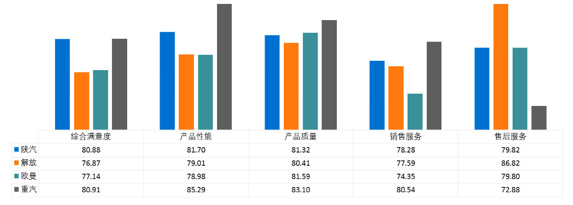 第一梯隊——重汽第一(80.91分),陜汽第二(80.88分)