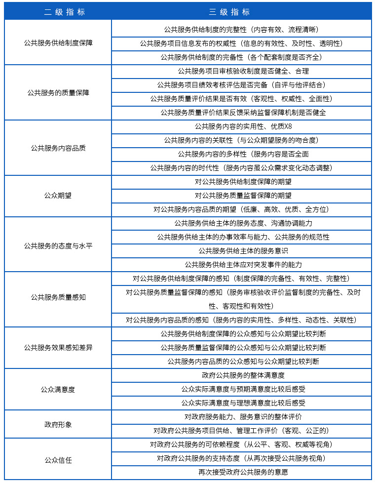 公共服務滿意度測評指標
