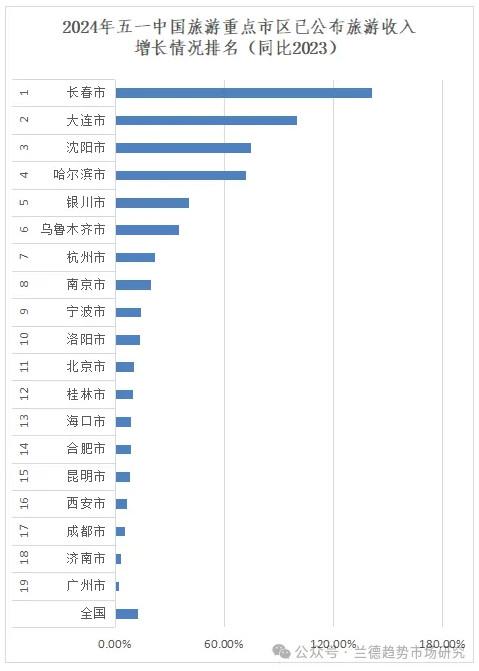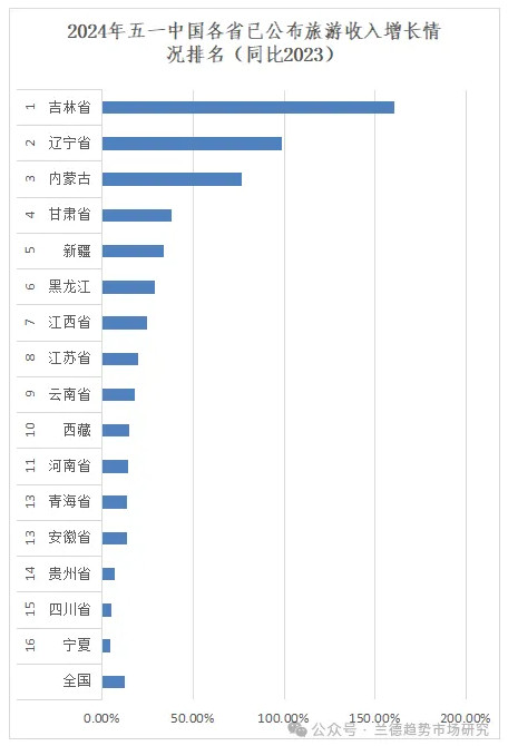 文旅部數(shù)據(jù)顯示,五一國內(nèi)游客出游總花費1668.9億元,同比增長12.7%。根據(jù)公布數(shù)據(jù),2024年五一期間旅游收入增長省排名中,吉林、遼寧、內(nèi)蒙古、甘肅、新疆排名前五;市排名中長春、大連、沈陽、哈爾濱銀川排名前五。