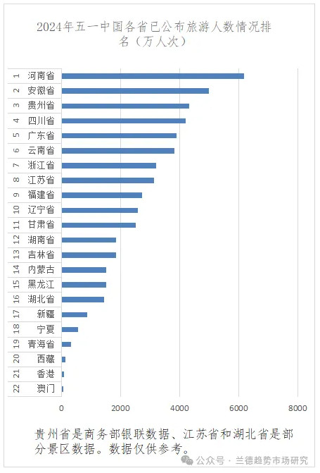 二2024年五一中國各省市旅游數(shù)據(jù)增長情況排名統(tǒng)計